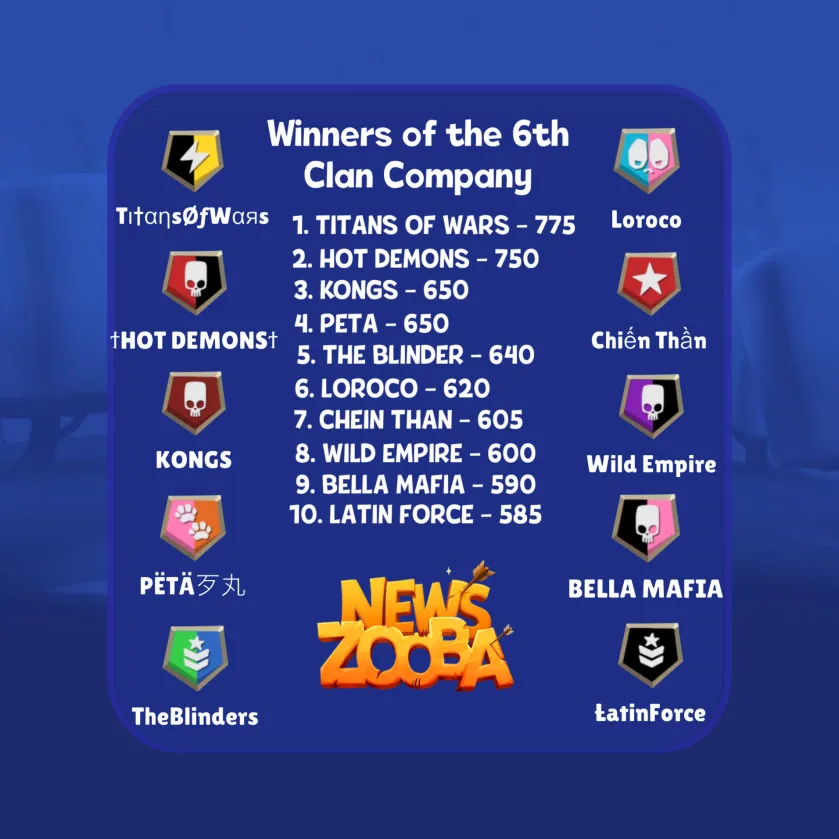 The 6th Clan Wars Campaign Has Ended — Congratulations to the Top 10 Clans!